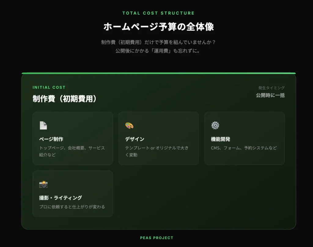 - ⚡制作費用の相場は30万〜300万円以上と幅広い。差が出る理由を理解することが大切