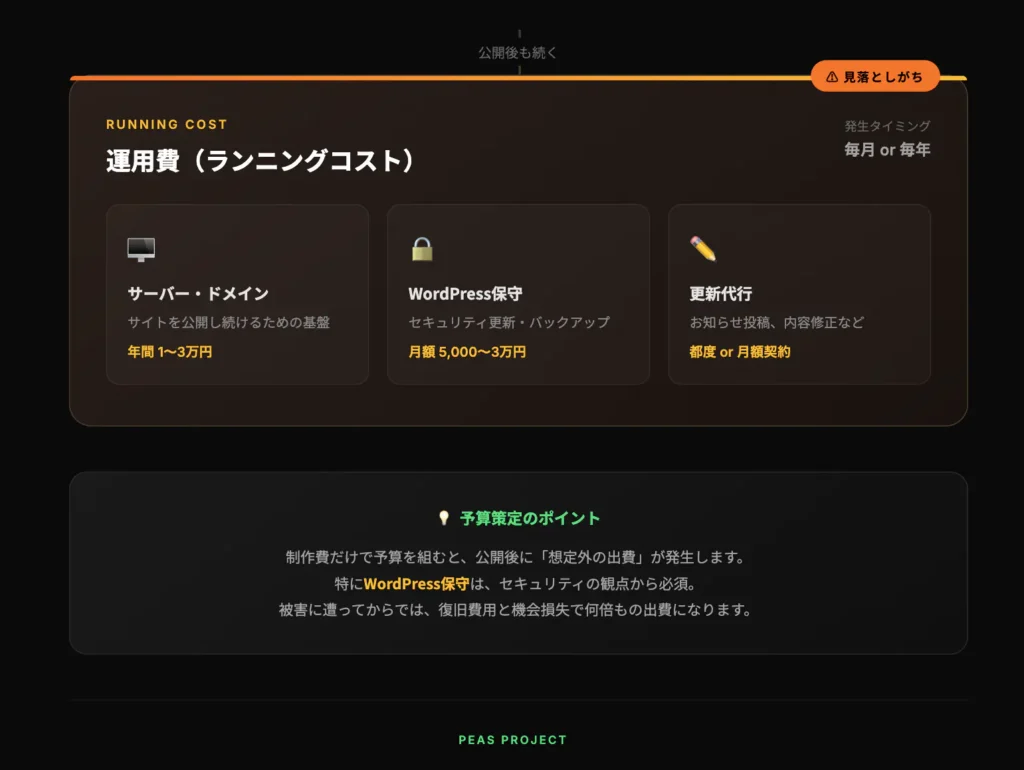 - ⚡制作費だけでなく「運用・維持費」も予算に組み込むべき