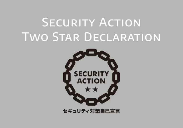 そこで今回、セキュリティへの取り組みを明確にお伝えするため、IPA(独立行政法人情報処理推進機構)のSECURITY ACTION二つ星を宣言しました。