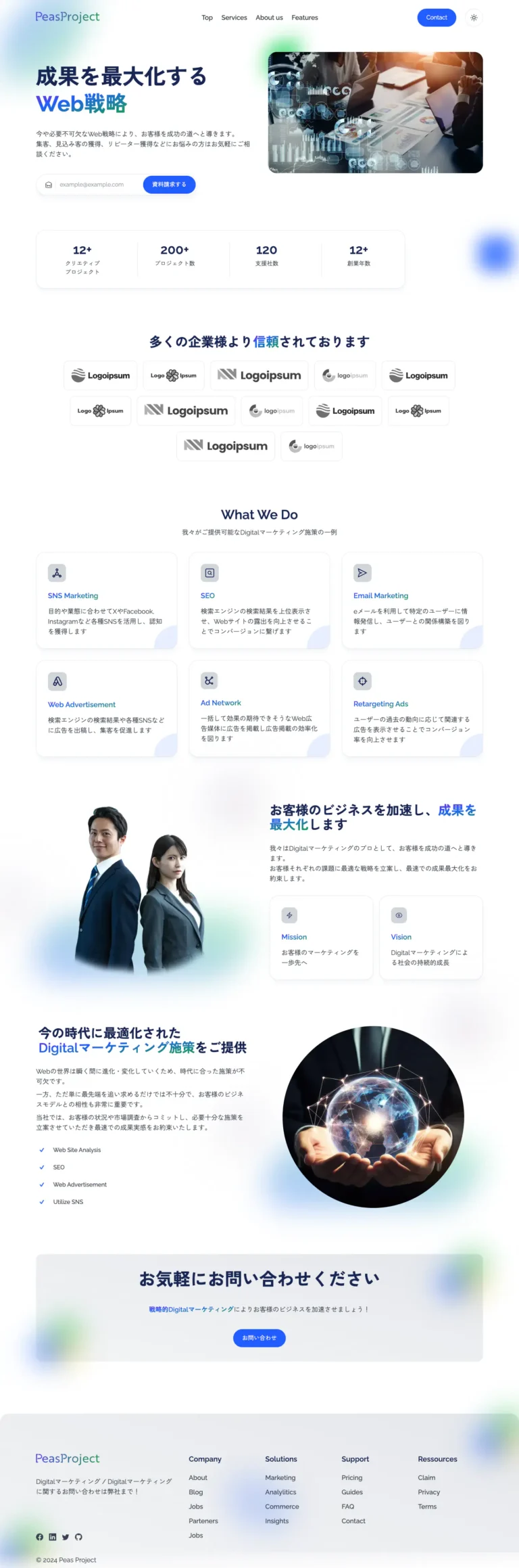 モダンなWebフレームワークであるAstroを用いて、コンサルティング企業のトップページを制作。
